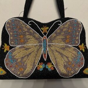 Serve butterfly energy 🦋✨ with this gorgeous unbranded fully beaded handbag featuring a large butterfly design with colorful beadwork details throughout. The shape is structured with a slightly curved top and a comfy beaded shoulder strap.