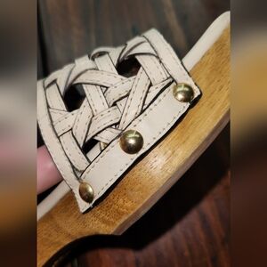 TORY BURCH Leather Cream Basketweave Wooden Clogs Sandles US 7