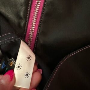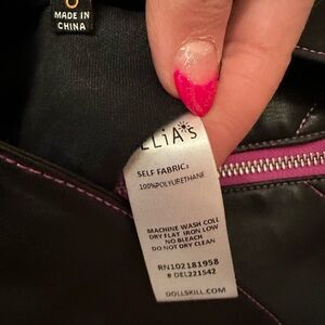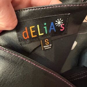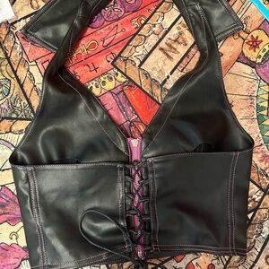 dELiA*s/Dolls Kill Black Leather Zip Front/ Corset Back Top w Pink Stitching S