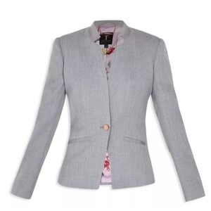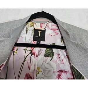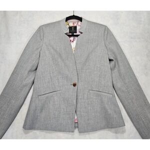 Ted Baker Blazer Sz 3 / US 8 Daizi Textured Tailored Gray Stretch Pockets