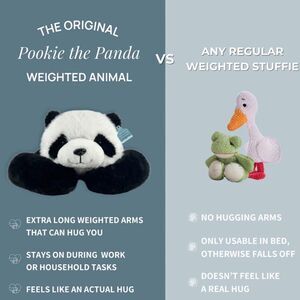 Meet Pookie the Panda, a weighted stuffed animal with extra-long arms and paws that hug you back. Pookie helps you stay focused, feel safe, and reduce stress and anxiety. Whether you're working, studying, or winding down, Pookie brings the comfort of a warm hug anytime you need it