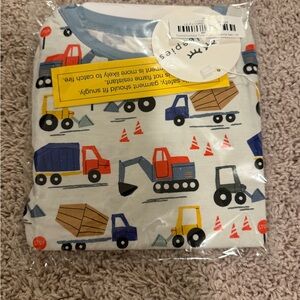 Adorable construction-themed pajama set. Features trucks and cones. Soft and comfortable fabric. Long sleeve long pants. Sold out in this size online