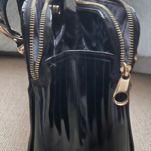 Ted Baker Glossy Black Satchel with Gold Accents