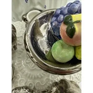 No chips or cracks. Some fruit is missing in bowl--see picture. Never used, only displayed. Glossy finish. Purchased in the day at Saks Fifth Avenue department store. Shipped with great care. Thank you for viewing this item and visiting my store!