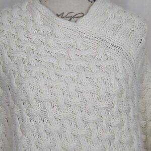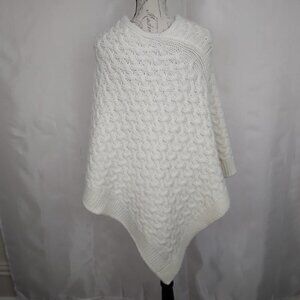 Winter White Ivory Wool Blend Cable Knit Poncho