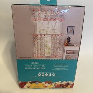 Pioneer Woman Mazie Small Window Curtain Set 3Pc Tiers 30"Wx36"L Plus Valance