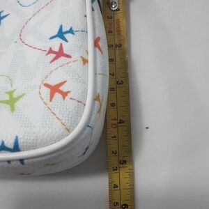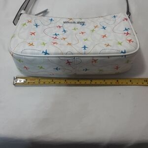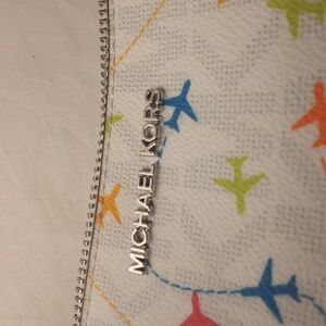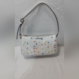 Michael Kors Jet set airplane pouchette shoulder bag white with multi color plane design pre owned in good condition please look at pictures they are part of description