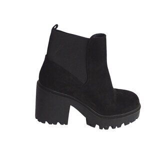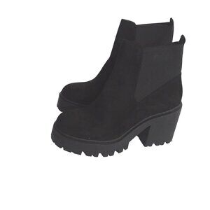 Soda Women Black Platform Chelsea Ankle Boots Size 9 Faux Suede Lug Block Heel