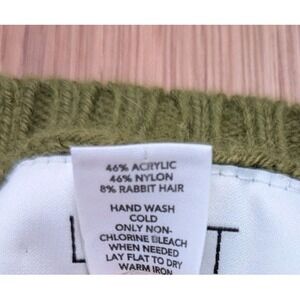 Ann Taylor Loft Cable Knit Sweater Green Size XL Soft Rabbit Hair Blend Stretchy
