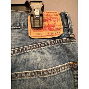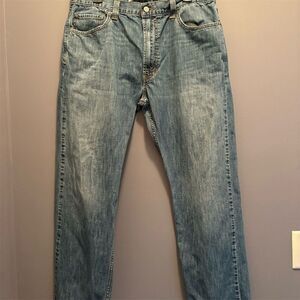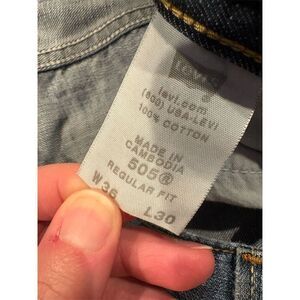 Keywords: Levi's, men's jeans, 505 model, regular fit, straight style, light wash, denim, blue jeans, casual wear, 36x30, 5-pocket design, zip closure, cotton, machine washable, pre-owned.