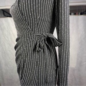 ASTR The Label Jolene Dress Black Striped Faux-Wrap Mini Shift Size XS
