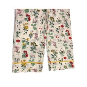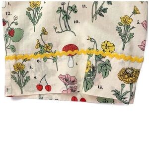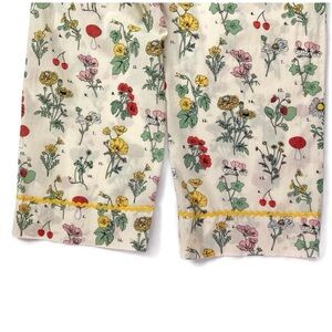 ban.do pajama set in an Emily Wilde-esque bright floral design on cream background. Rick rack details along sleeves, ankles and collar. Button front top; pants have elastic waistline with drawstring and pockets!