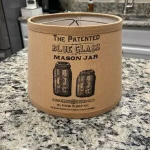 Tan lampshade featuring a vintage Mason jar print. Perfect for adding a rustic touch to any room. farmhouse decor 10 inches wide by 7 1/2 inches tall