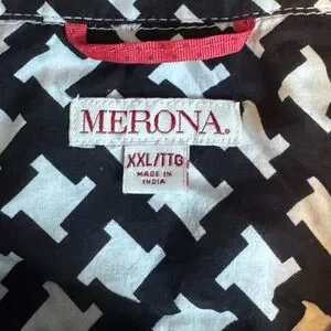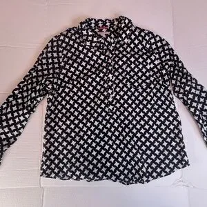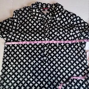 Merona blouse, black white top, geometric print blouse, button front shirt, business casual top, office wear blouse, cotton blouse, workwear top, minimalist style, classic print top, women's XXL blouse