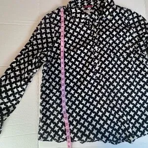 Merona Black & White Geometric Print Button Front Blouse XXL