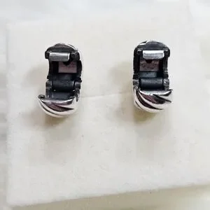 NWOT Pandora Silver Polished Feathered Clip Charms. Authentic Pandora sterling silver charm clips. Set of two clips, a standard Pandora bracelet has two clip spots. Add subtle texture. This clip charm is decorated with curved lines that are reminiscent of feathers. This clip charm features no silicone grip, so it will slide if not styled onto threads (two raised charm dividers). Brand new without box, never used.