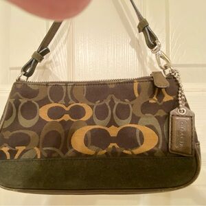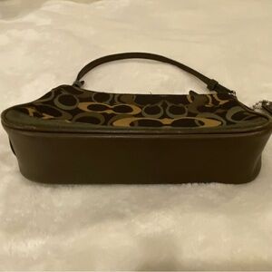Compact wristlet. Features a secure zipper closure and wrist strap. 2004 Vintage Y2K Coach Demi Shoulder Bag Purse in Optic Signature Monogram Jacquard