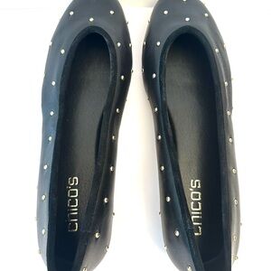 Beautiful NEW studded flats from Chico’s. Crafted nappa leather upper featuring a multi-pin dot stud design and sweetheart topline shape, these shoes feature soft microsuede topline binding. Made using a
