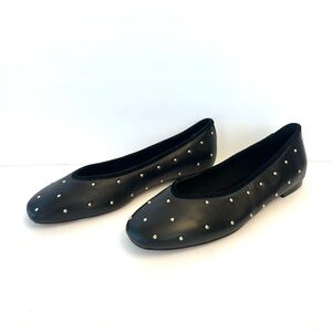 Chico’s NEW black leather, gold studded ballerina flats, size 9