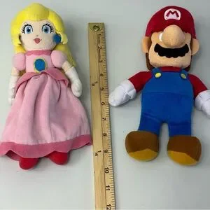 Nintendo Super Mario Bros- Mario & Princess Peach 9” Plush Toy Lot Authentic