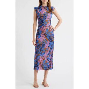 NWT Cleobella Carrie Floral Mesh Bodycon Midi Dress Large Fresco Print Multi