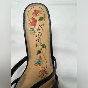 TABITA black Leather Open Toe Heels with Embroidery