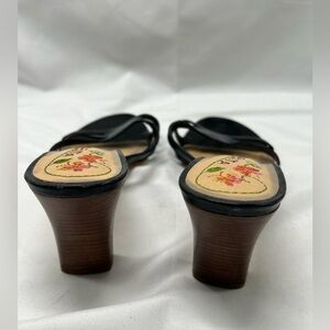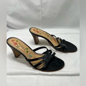 TABITA black Leather Open Toe Heels with Embroidery insole