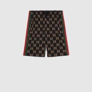 Stylish Gucci shorts with iconic supreme GG pattern and red/green stripe. Ideal for casual wear.