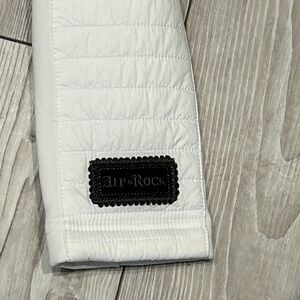 Stay stylish and comfortable with this elegant white jacket. Perfect for any occasion. This is a very beautiful jacket. Great quality. It is a size small. Armpit to armpit measurement is 17 inches. Length is 24 1/2 inches. There are no stains or tears. All zippers work. Smoke free home. Thank you for looking.