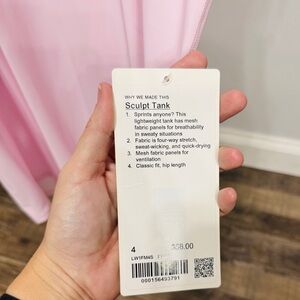 NWT Lululemon Sculpt Tank Top Light Pink Size 4 Mesh Athletic Running