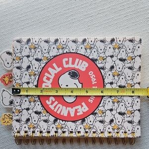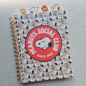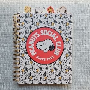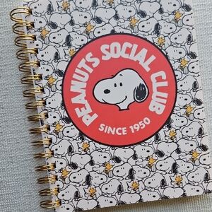 Charming Snoopy design on a spiral journal. Features Peanuts Social Club logo. Ideal for notes and doodles.