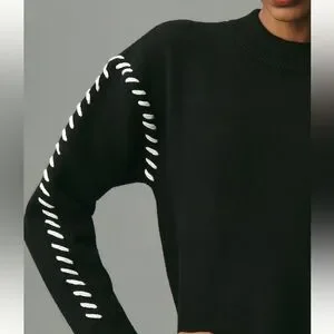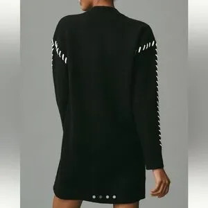 Chic black dress with long sleeves. Features unique white stitch detailing. Perfect for stylish outings.