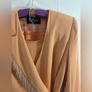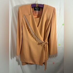 VTG Solini New York Peach Western Beaded Fringe Blazer/Skirt Set Size 10