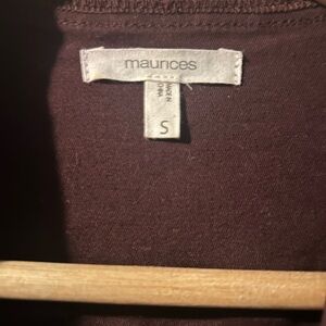 Maurice’s cotton blend moto jacket in burgundy. Women’s size small: 16 inches pit to pit and 22 inches shoulder to hem.