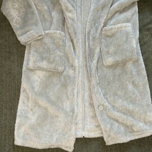 Stay warm and stylish with this cozy gray sherpa coat. Perfect for chilly days, this coat offers both comfort and elegance.