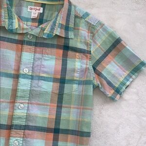 Cat & Jack Button Down Shirt 8 Short Sleeves Mint Green Orange EUC