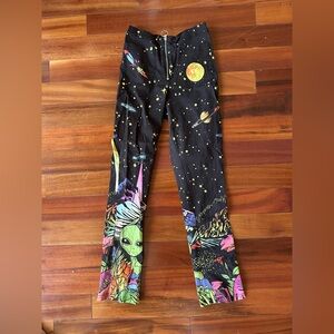 Embark on a cosmic journey with these vibrant bottoms. Featuring an alien and space design, perfect for explorers. these look small but have a lot of stretch. for a petite figure but really fun!