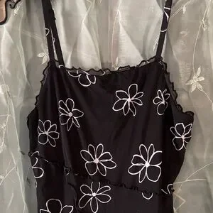 Wild Fable Black Mini Dress with White Floral Accents