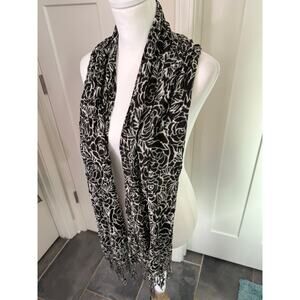 Made from a lightweight and soft fabric, this scarf is comfortable to wear year-round. The classic black and white color palette ensures it will complement a wide range of colors and styles. This scarf is in excellent condition and ready to find a new home.