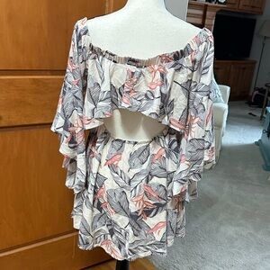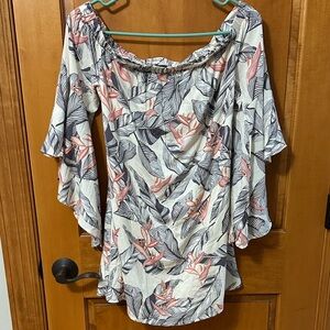 Lulu's Floral off Shoulder Ruffle Sleeve Dress Medium