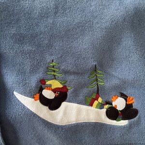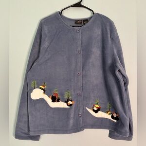 Croft & Barrow Sports Fleece Button Jacket Blue Size 1X Embroidery Penguins