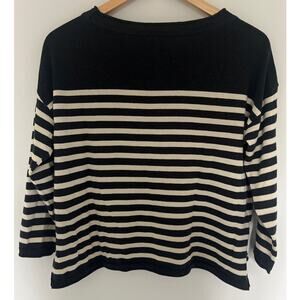 Pact 100% Organic Cotton Crew Neck Sweater Charcoal Gray and Cream Small