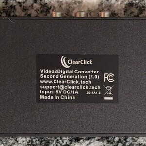 The item is a ClearClick Video2Digital Converter 2.0 (Second Generation), a device used to transfer old video tapes or camcorder tapes to digital format without a computer.