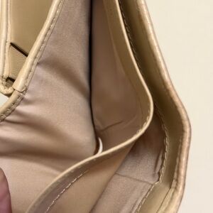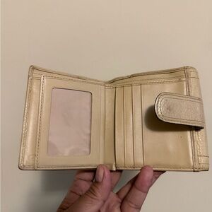 Coach Leather Soho Buckle Wallet in a cream or bone pebbled leather with brass/gold hardware