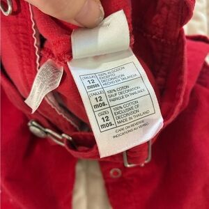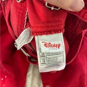 The cutest red corduroy overalls with Winnie the Pooh winter designs on them. Originally from the Disney store. Size 12 month. In excellent condition.