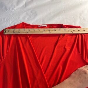 Tahari Red V Neck Short Sleeve Wrap Sheath Knee Length Dress Women's 12