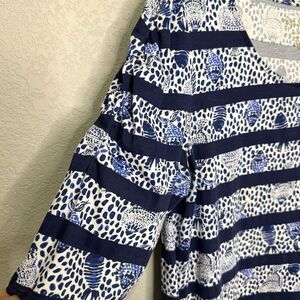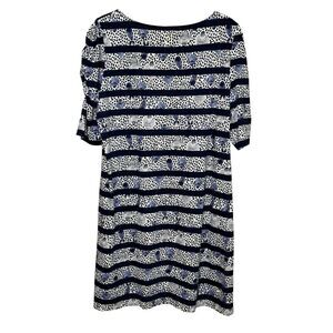 Lilly Pulitzer Lajolla High Tide Heart And Sole Stripe Fish Print Dress Womens Medium Blue White Shell Stripe Pima Cotton Summer