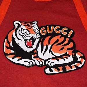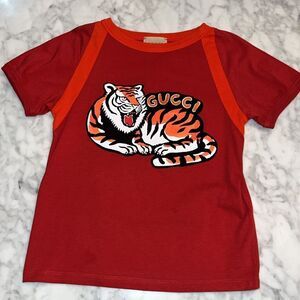 • Elevate your little ones' style quotient! with the Boys Tiger T-Shirt in Red by Gucci. Purchase now and let your child dazzle in his unique fashion statement!