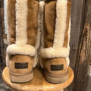 Cozy UGG winter boots. Soft tan exterior. Warm cream lining. Perfect for cold weather. These have signs of wear but are in really good condition.