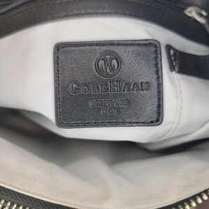 The handbag is a Cole Haan black leather shoulder bag or satchel style.